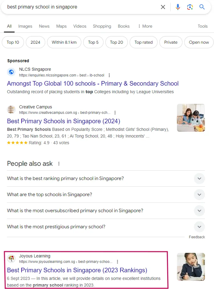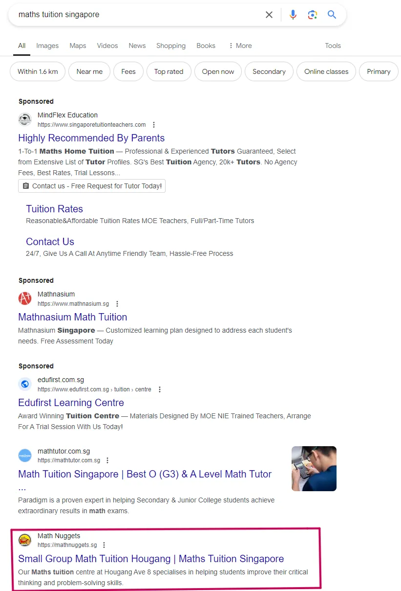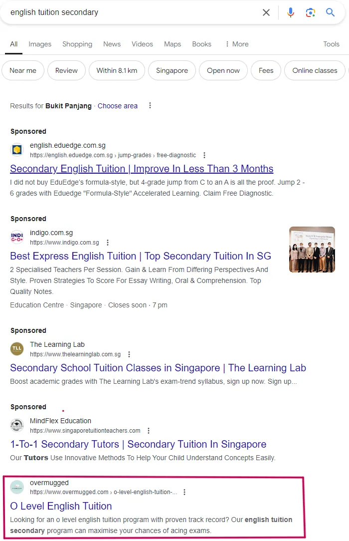 ✅Got on Google page 1 in less than 3 months for competitive keywords like JC tuition, english tuition, chemistry tuition etc.